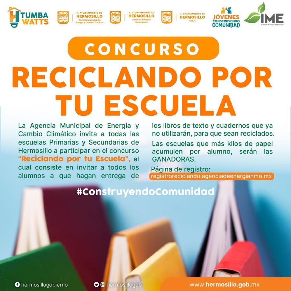 Hermosillo, Sonora, junio 24 de 2022.- La Agencia Municipal de Energía y Cambio Climático (AMEC) invita a estudiantes de las primarias y secundarias de Hermosillo a participar en el concurso Reciclando por tu Escuela, para recopilar papel.El concurso exhorta a las alumnas y los alumnos a entr...