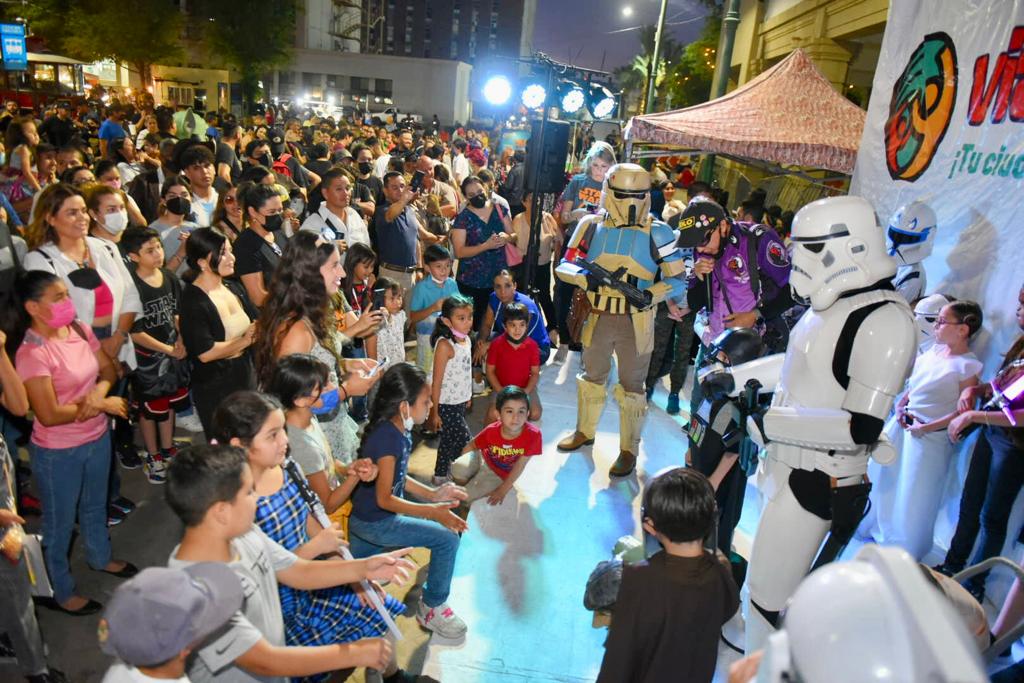 Hermosillo, Sonora, junio 27 de 2022.- Personas de todas las edades acudieron el domingo a la Plaza Zaragoza y disfrutaron de la Víactiva con la temática de Star Wars, con presencia de personajes de la saga de la organización Legión 501.En el Centro Histórico de la ciudad, desde temprano s...