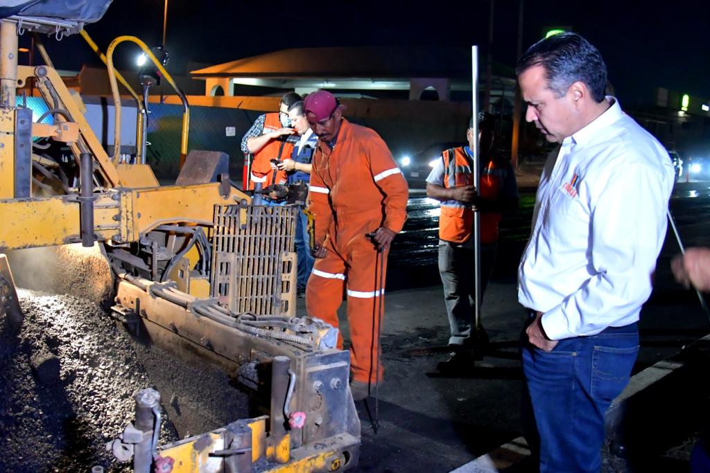 Hermosillo, Sonora; 18 de mayo, 2022.- El Presidente Municipal, Antonio Astiazarán supervisó los trabajos de recarpeteo del bulevar García Morales que presentan un avance del 15%, trabajos que se realizan en horario nocturno para evitar afectaciones al tráfico.Acompañado por Astarté...