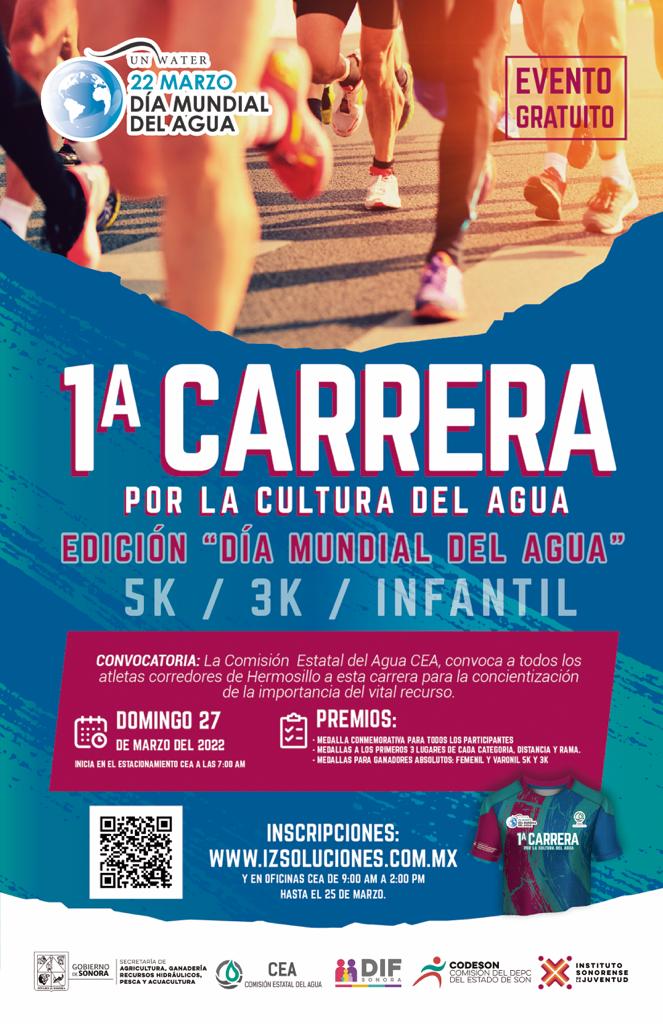Hermosillo, Sonora; a 23 de marzo de 2022.- La Comisión Estatal del Agua (CEA), invita a participar en la "Primera Carrera por la Cultura del Agua”, la cual se realizará este domingo 27 de marzo, manifestó José Luis Jardines Moreno.El vocal ejecutivo de la CEA, expresó que el objetivo d...
