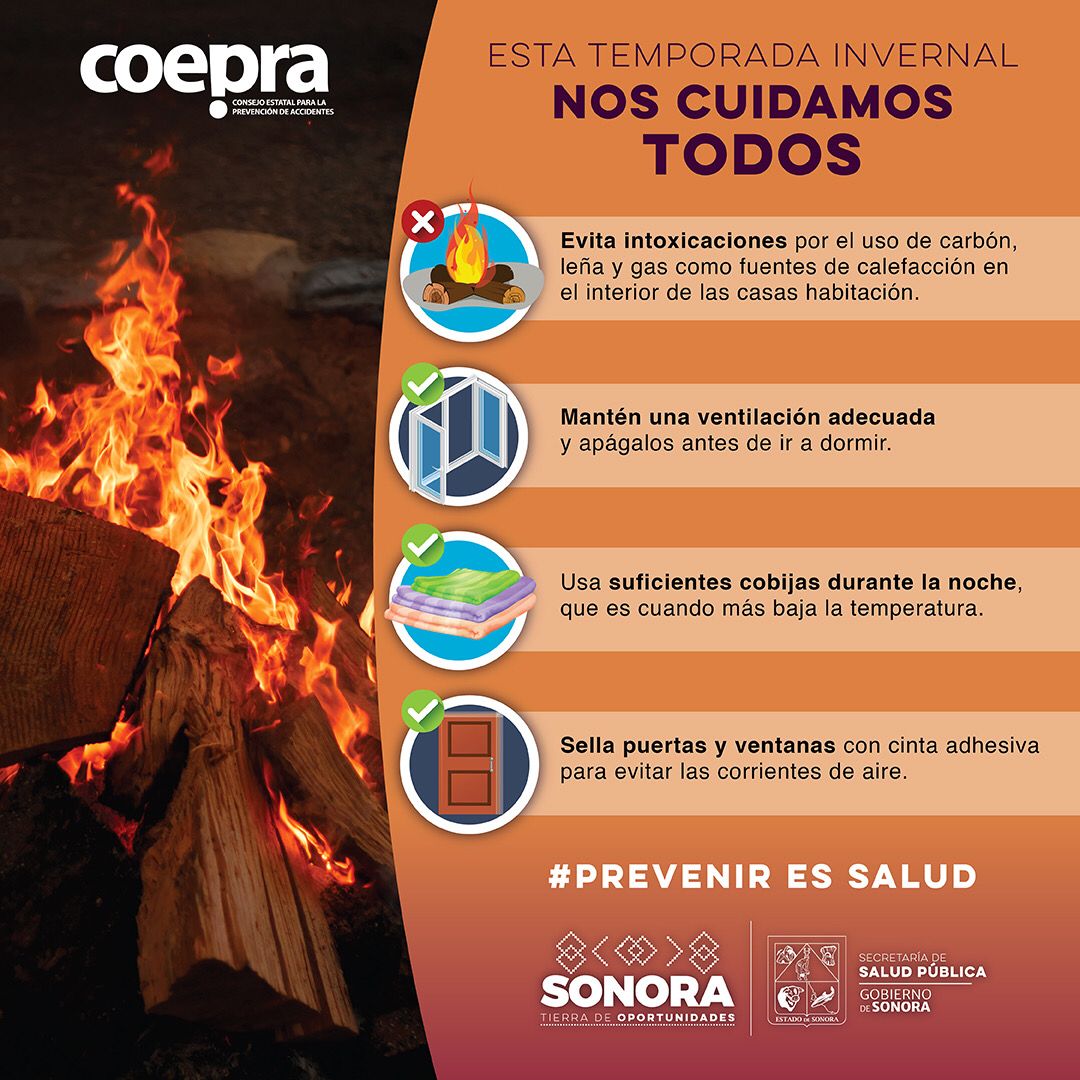 Hermosillo, Sonora; 3 de febrero de 2022.- La Secretaría de Salud del estado (SSA), a través del Consejo Estatal para la Prevención de Accidentes (Coepra), insta a la población a extremar precauciones para evitar accidentes e intoxicaciones en el hogar debido al uso de generadores de calor...