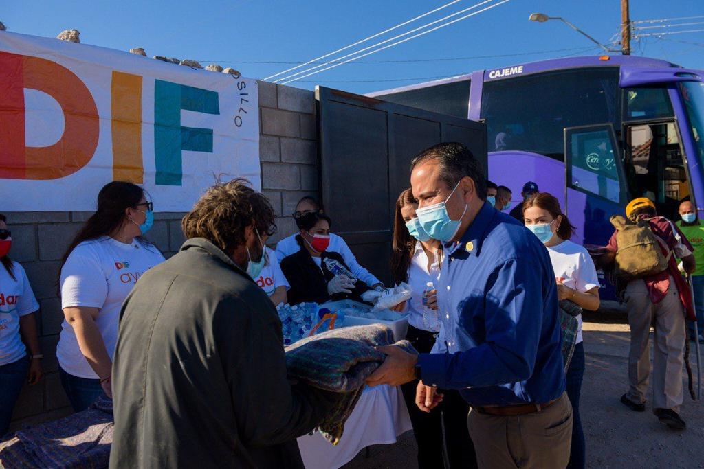 Hermosillo, Sonora; diciembre 02 de 2021.- Para viajar con comodidad, seguridad y dignidad a reencontrarse con sus familias, 56 personas en situación de calle fueron despedidos personalmente por el alcalde Antonio Astiazarán y su esposa Patricia Ruibal Zaragoza, Presidenta de DIF Hermosillo.A...