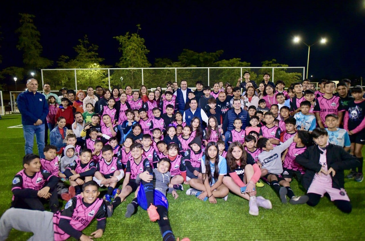 Hermosillo, Sonora; 16 de febrero, 2024.- "Andamos como niños con juguete nuevo” expresaron integrantes del equipo Linces al recibir por parte del Presidente Municipal, Antonio Astiazarán, la transformación de la cancha San Bosco que está ahora totalmente rehabilitada e incluye un Centro de Re...