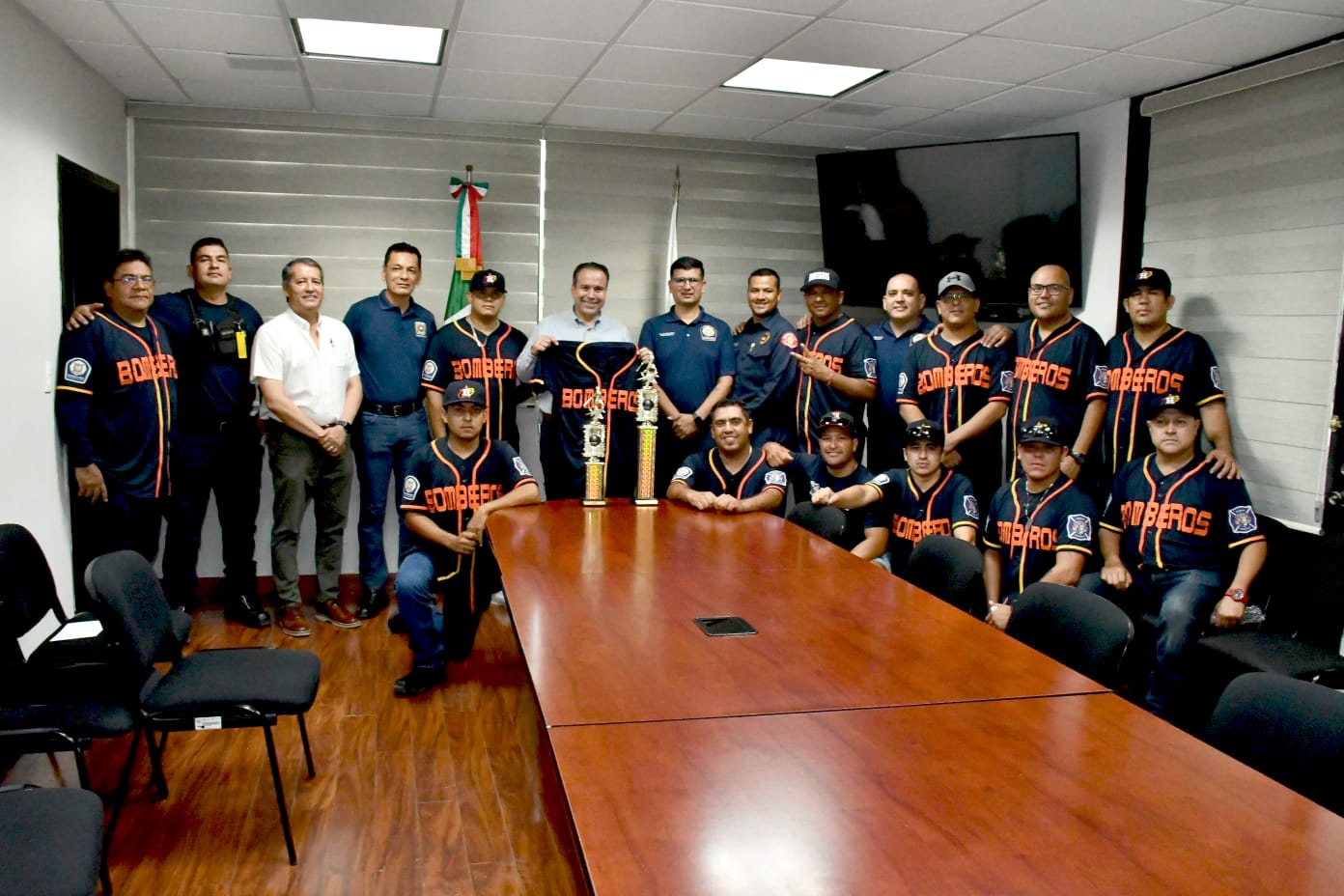 Hermosillo, Sonora; 20 de agosto, 2023.- "Nuestros bomberos nos llenan de satisfacción y orgullo”, expresó Antonio Astiazarán al recibir en Palacio Municipal al equipo de béisbol Bomberos de Hermosillo quienes por segunda ocasión se coronaron como campeones durante el torneo region...