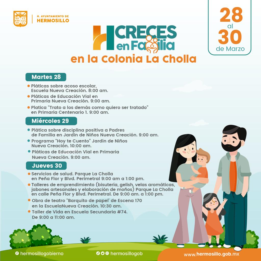 Hermosillo, Sonora; 27 de marzo, 2023.- Diversas dependencias municipales coordinadas por DIF Hermosillo estarán esta semana en la colonia La Cholla para llevar a sus residentes un programa gratuito de actividades culturales, de esparcimiento y servicios de salud durante una jornada más del p...