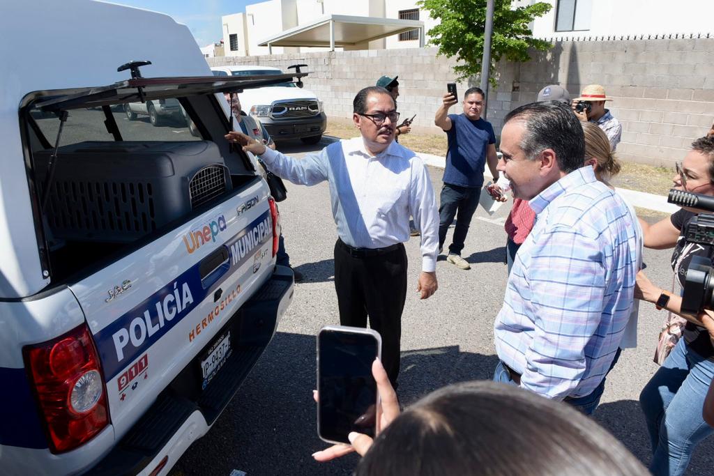 Hermosillo, Sonora; septiembre 23 de 2022.- El Presidente Municipal de Hermosillo, Antonio Astiazarán Gutiérrez, mostró a Renán Barrera Concha, Presidente Municipal de Mérida, Yucatán, la operatividad y ventajas en el tiempo de respuesta a llamados de urgencia y eficiencia al ...