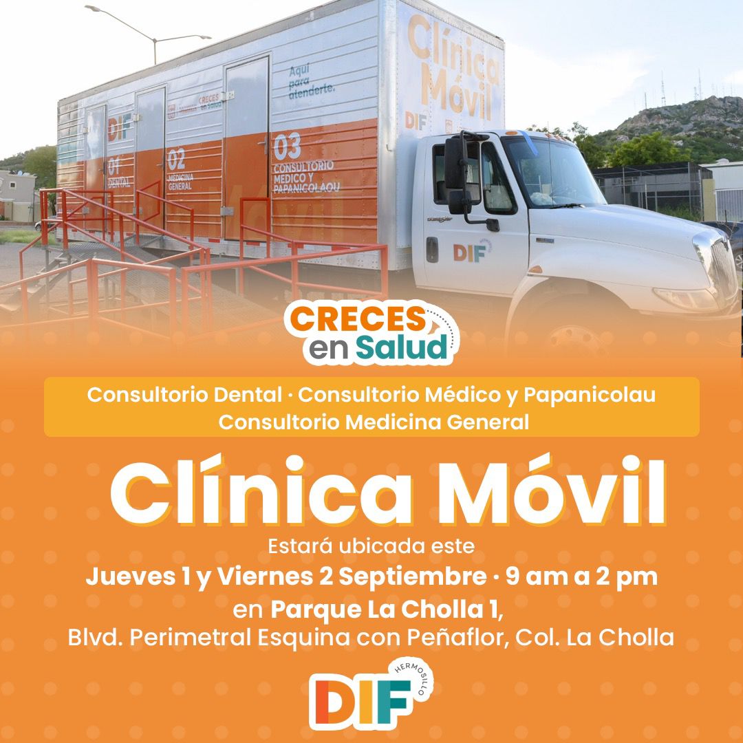 Hermosillo, Sonora; 31 de agosto, 2022.- Los servicios gratuitos de la Clínica Móvil de DIF Hermosillo estarán disponibles este jueves 1 y viernes 2 de septiembre en el Parque La Cholla 1 ubicado en bulevar Perimetral esquina con Peñaflor.La Directora del Sistema DIF de Hermosillo, Isela Mo...