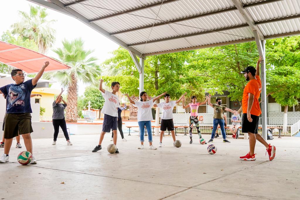 Hermosillo, Sonora, julio 11 de 2022.- Niñas, niños y jóvenes se divierten mientras practican deportes y aprenden sobre valores en el Campamento en Comunidad del Instituto del Deporte y la Juventud de Hermosillo (IDJH).El coordinador del campamento, Raúl Arturo Ferrel Osuna informó que aú...