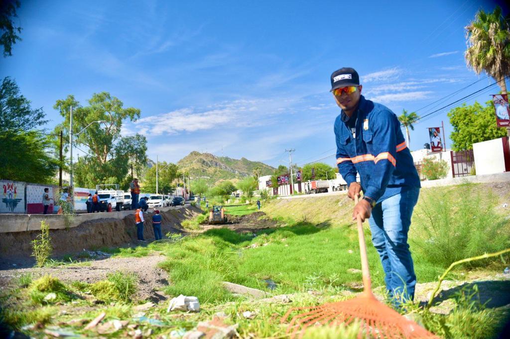 Supervisa Toño Astiazarán limpieza del canal pluvial Villas del Pitic
