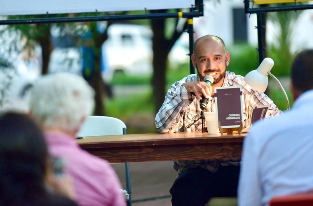 Hermosillo, Sonora, julio 07 de 2022.- El ganador del XIX Premio Nacional de Poesía Alonso Vidal 2021, Hugo Medina presentó su libro Ciudades Agridulces, publicado como estímulo por parte del Instituto Municipal de Cultura y Arte (IMCA).La directora de Arte del IMCA, Alina Esperanza Martíne...