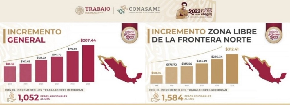 dio a conocer que los salarios mínimos para 2023 tendrán un fuerte incremento.