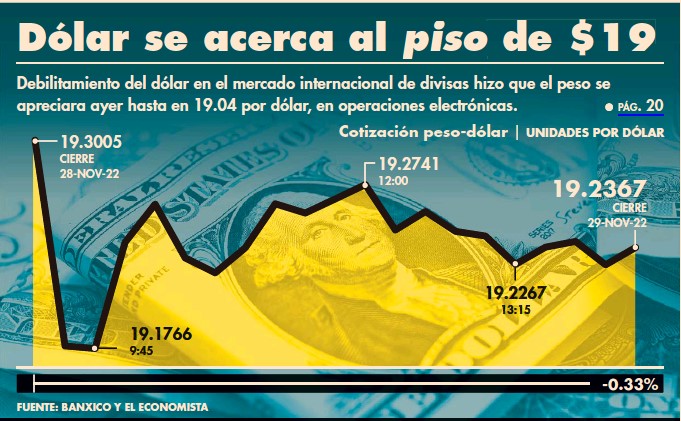 martes, el avance del peso frente al dólar rozó por momentos las 19 unidades y