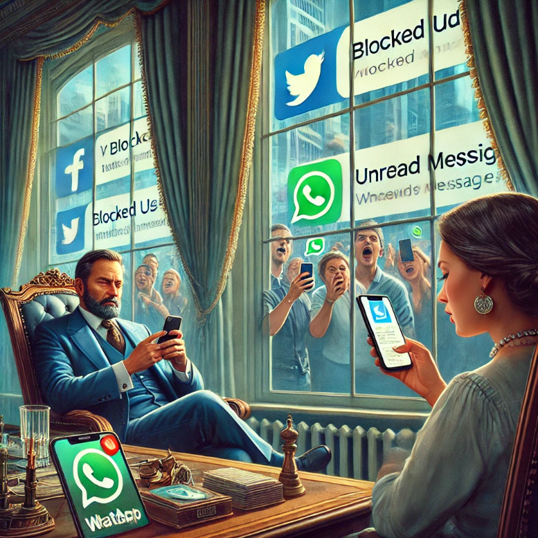 el bloqueo en redes sociales y la opacidad en WhatsApp en un símbolo de