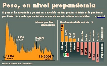 moneda, de tal manera que el peso que se ha venido apreciando en los últimos